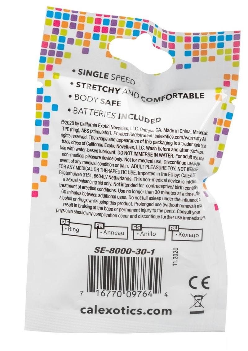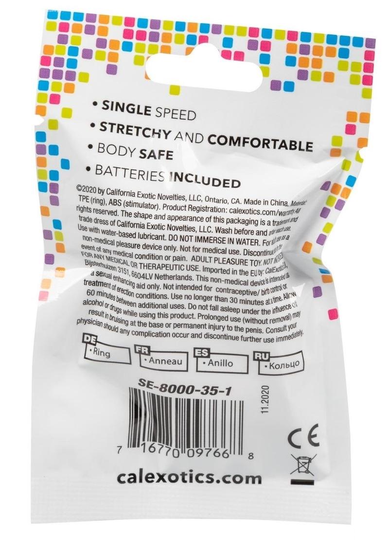 This vibrating cock ring is the buzz all around town. For the person who simply isn't satisfied with the norm, the Foil Pack Vibrating Ring gives you the dynamic coverage you need, and the function you deserve. Keep up the strength, girth, and pleasure of your member by using this super-stretchy ring to snugly hug your most valuable possession, keeping you harder, longer. The vibration features in this compact adult toy allows you and your partner to reach the absolute heights of ecstasy that you have been seeking, maximizing sexual pleasure while also maximizing full penetration. The body-safe, super soft and stretchy material is hygienic, and the included batteries let you know that you are ready too whenever and wherever!