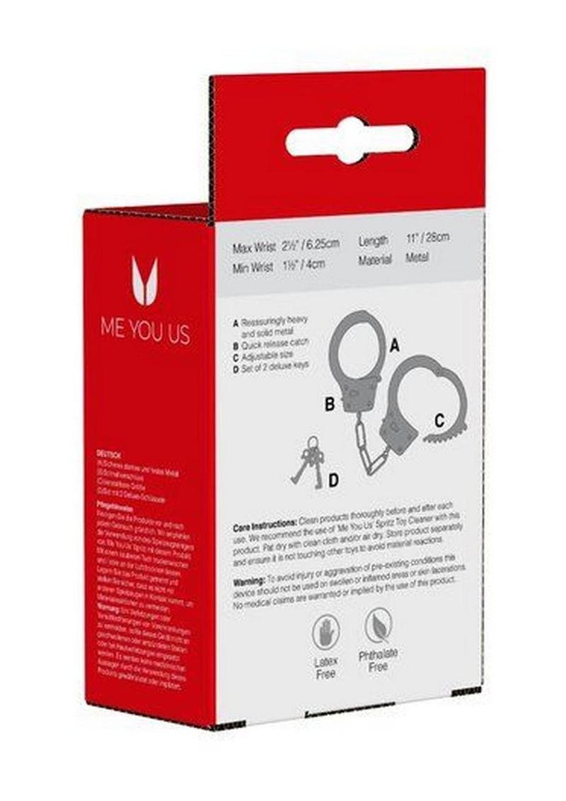 Metal Handcuffs with 2 Deluxe Keys. This high quality metal handcuffs will help you bring a bit of bondage to your bedroom. They have two deluxe keys and a quick release switch in each cuff.