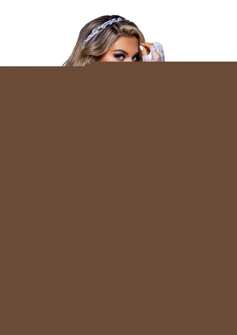 Maid to Order, Lace Trimmed Cut-Out Bodysuit, Sheer Apron, Garter, and Head