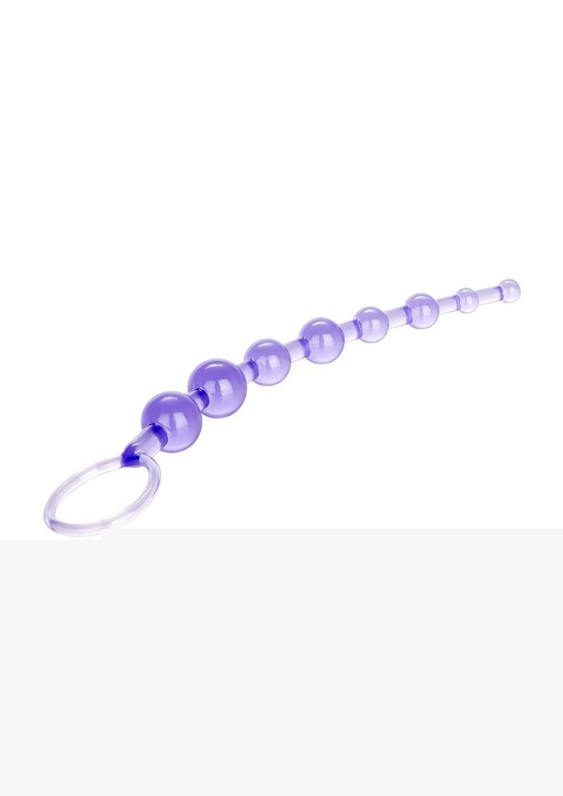 Go insanely wild while training a new hole with this soft, pliable, sturdy jelly anal bead. Slim and sized for the novice. Flexible and pleasurable features handy retrieval ring to avoid getting lost. 8 soft, pliable beads that are sized for increasing pleasure.