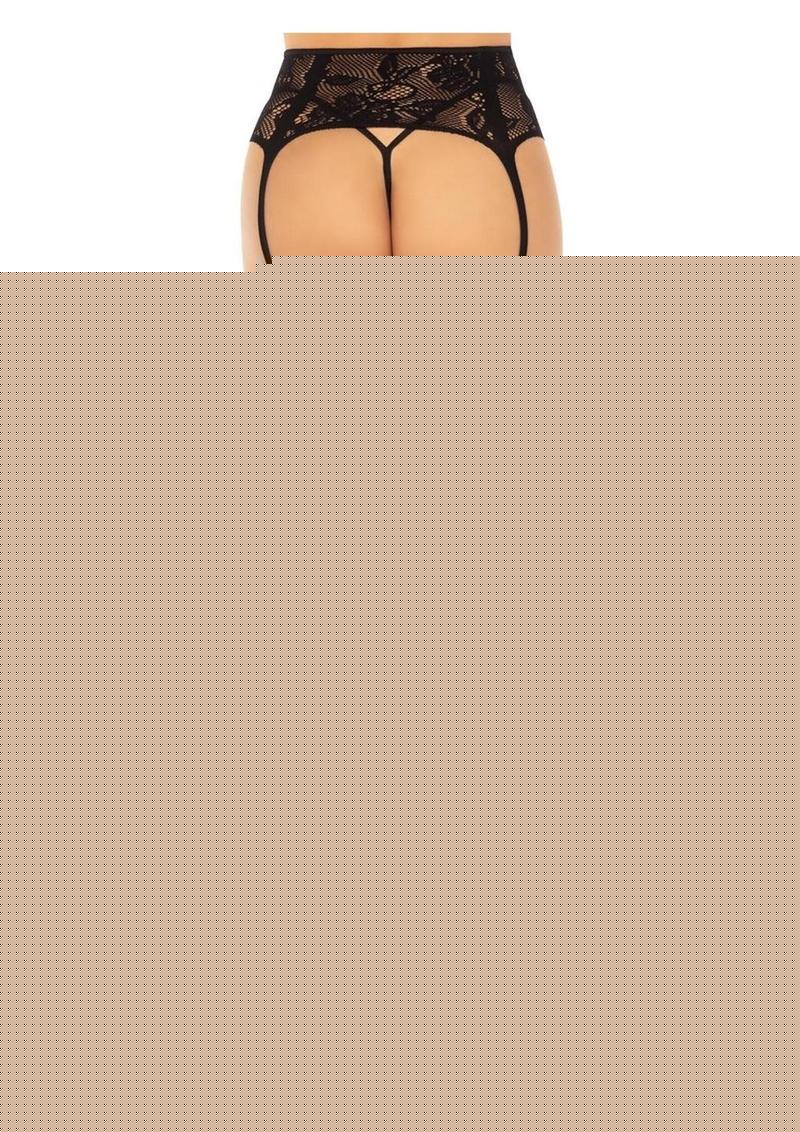 Leg Avenue French Rose Lace Backseam Stockings with Attached Garter Belt