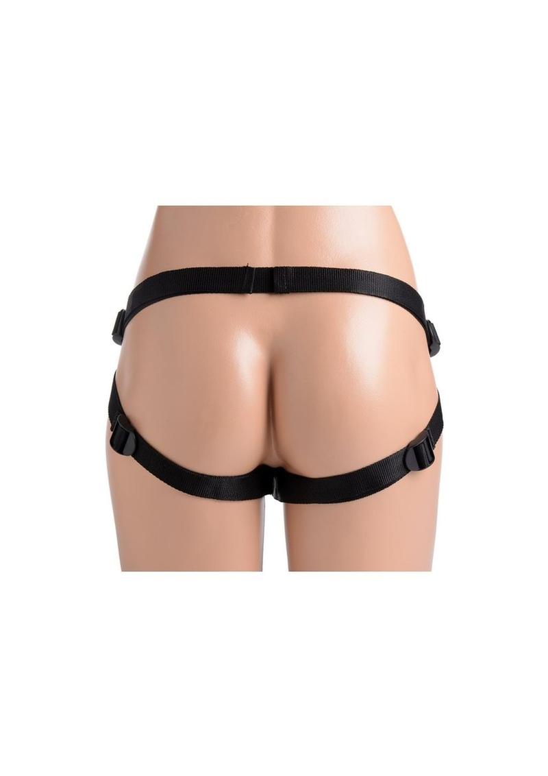 Perfect for pegging or vaginal sex, this strap-on set has everything you need for a comfortable and passionate penetration! Equipped with a sexy, adjustable harness and a silky, non-threatening dildo, you and your partner will be able to delve into new pleasure territory. The harness accommodates many sizes, wrapping seductively around the butt and thighs. A small pocket sits within the inner panel for adding a vibrating bullet if you choose. The dildo is curved for prostate or G-spot stimulation, with a tapered shaft that gradually increases in diameter. This, coupled with the smooth material, will allow for an easy insertion at your own pace. The dong can also be used on its own, with a suction cup base that is perfect for mounting to hard surfaces. Made of silicone, it is non-porous and phthalate-free. Sterilize with mild soap and warm water, but do not use with silicone lubricants.