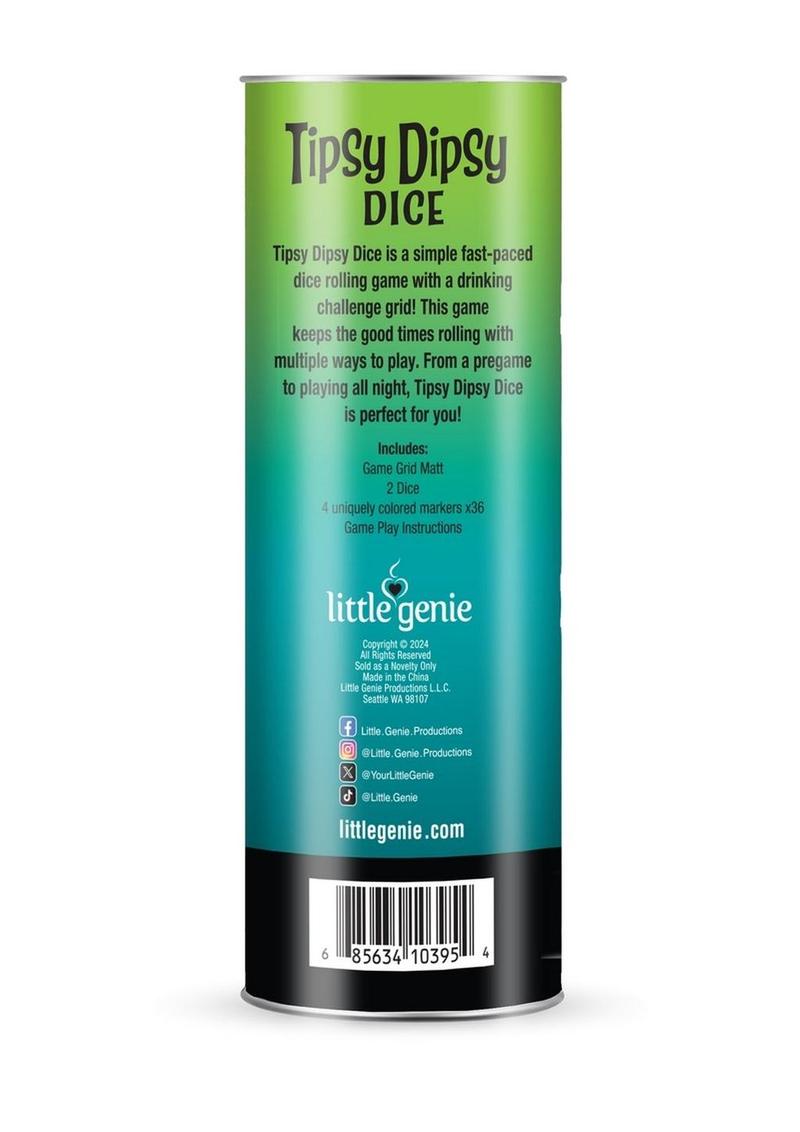 Get ready to roll the dice and your eyes with Tipsy Dipsy—the game that guarantees laughter, and maybe some questionable dance moves! This fast-paced dice-rolling extravaganza comes with a drinking challenge grid that's sure to keep the good vibes flowing faster than your favorite bartender on a Friday night. Perfect for 2-8 players aged 21 and over, Tipsy Dipsy is your ticket to a night of fun whether you're pre-gaming or partying till the sun comes up.